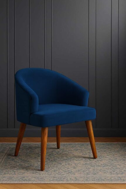 PAAM WOOD Roso Modern Dining Chair | Lounge Accent Chair for Living Room Bedroom Restuarant | Velvet Fabric with Wooden Legs (blue)