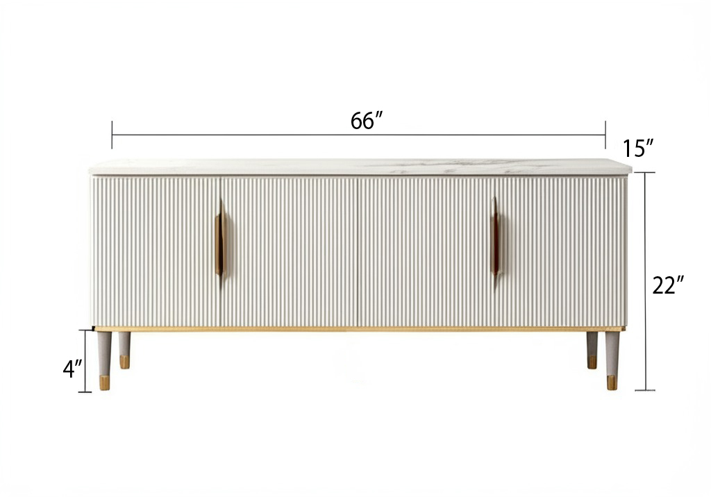 PAAM WOOD Mazzo Modern TV Unit/Console – 70″x15″x18″ White Marble Top with Golden Acrylic, Waterproof Plywood & Charcoal Louvers – Media Cabinet | Modern TV Stand Console Without Storage