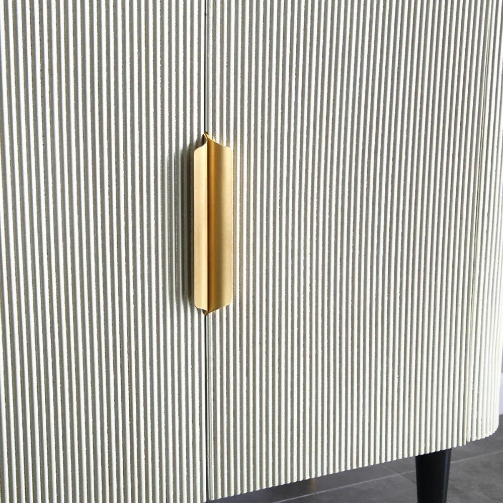 PAAM WOOD Modern Console Table, 55 x 15 x 30 inch, White Ribbed Design, Marble Top, Gold Accents, 4-Door Storage Cabinet, Waterproof Plywood, PVD-Coated Legs, Elegant Entryway or Living Room Console