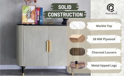 PAAM WOOD Sonic Console Table, White Marble Top, Charcoal Louvers, Gold Accents, 66 x 15 x 22 Inch, Modern Entryway Storage Cabinet, Waterproof Plywood, PVD-Coated Legs, Elegant TV Unit ₹85,000.00 Original price was: ₹85,000.00.₹39,800.00Current price is: ₹39,800.00.