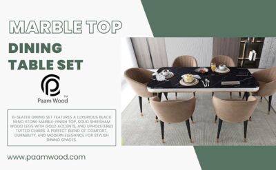 Elevate your dining space with this exquisite ZOLOWOOD marble-top dining table set. The stunning 91×183 cm black Neno stone tabletop creates a sophisticated focal point while offering ample space for six diners. The table features premium Sheesham wood legs with elegant gold-tipped accents, perfectly complementing the luxurious upholstered chairs. Each chair boasts a plush, taupe-coloured fabric with channel tufting, providing both comfort and style. The table’s white decorative trim adds a distinctive design element that enhances its modern aesthetic. The robust construction includes waterproof plywood and solid Sheesham wood components, ensuring durability for daily use. This dining set seamlessly combines functionality with luxury, making it ideal for both intimate family meals and sophisticated entertaining. The sleek marble surface offers practical maintenance while maintaining its elegant appearance. Perfect for contemporary homes seeking a balance of comfort and refined style.